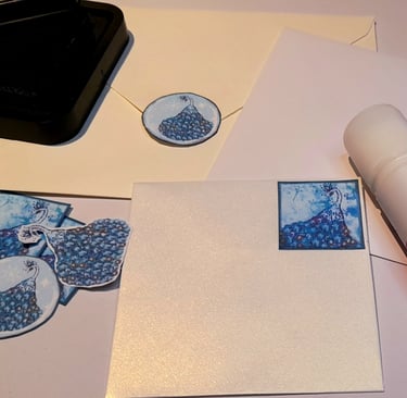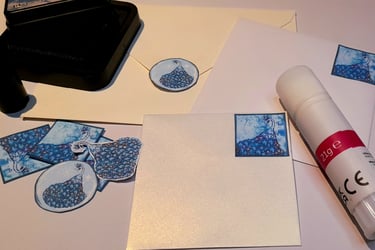 Choose the stamp designs for each blank envelope front. Ink around the edges of the design if desired to add to the vintage effect. Glue the designs to each envelope front and allow to dry. Add a fussy cut or stamp to the envelope closure if desired. Add lace, ribbon or embellishments to the envelope if desired
