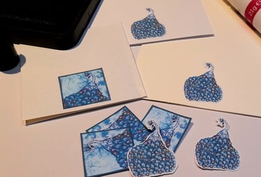 Cut around the card fronts, tags, stamps, fussy cuts and sentiments.