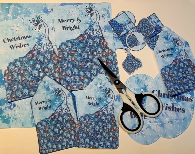 Choose the seasonal card kit you want to make up and print on A4 size lightweight card or heavyweight paper.